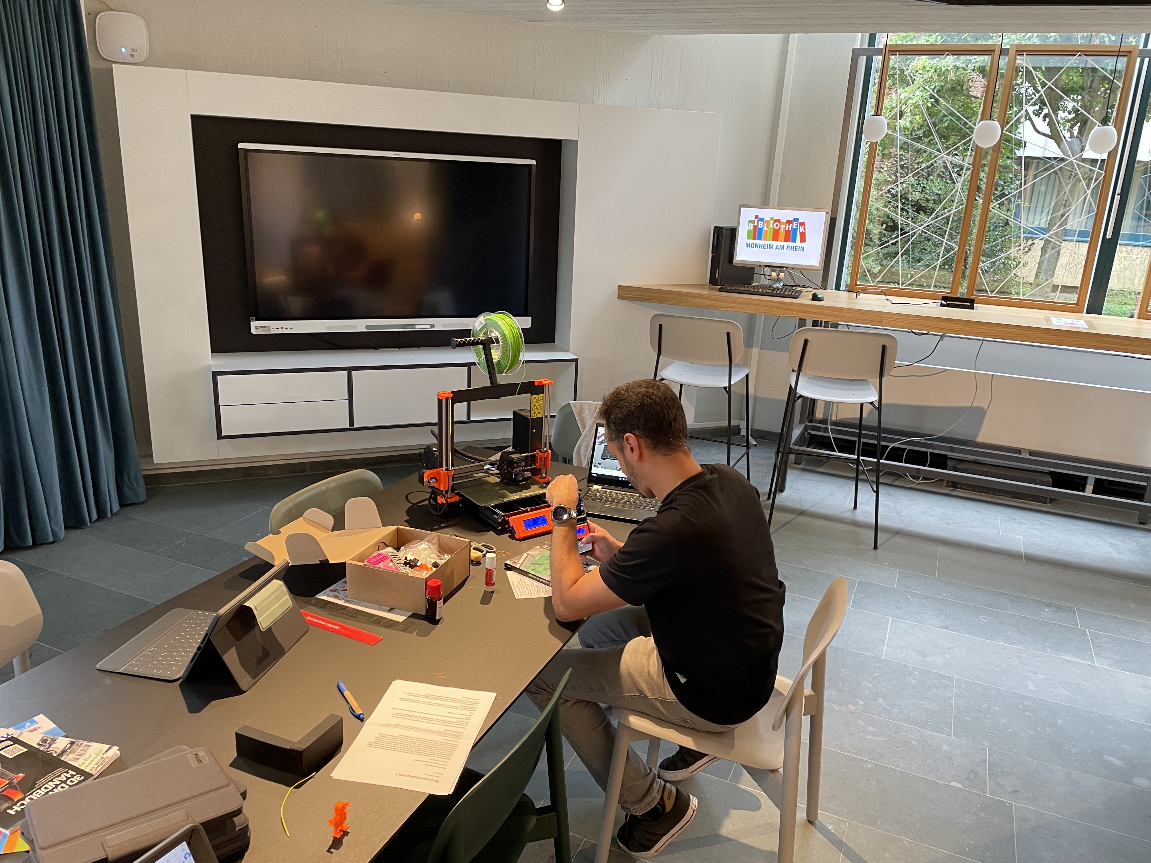 Im sogenannten Makerspace der Bibliothek stehen Nutzerinnen und Nutzern ein Dia-Digitalisierer, ein 3D-Drucker, ein Plotter und eine Stick-Maschine zur Verfügung. Wer die Geräte nutzen möchte, muss vorher einen kostenfreien Führerschein machen.