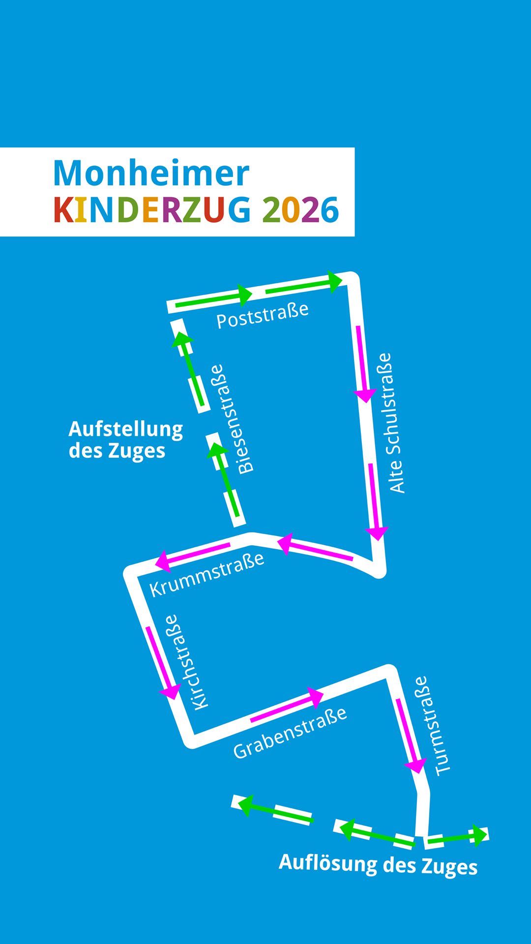 Der Kinderkarnevalszug zieht an Karnevalssonntag durch die Altstadt. Erstmalig startet der Zug in diesem Jahr um 15 Uhr. Beteiligt sind neben Prinzessin Vanessa, Prinz Finn, Pagin Jasmin, Adjutant Louis und Kinderschelm Tobias zahlreiche Schulen, Kindergärten, Vereine und weitere Fußgruppen.