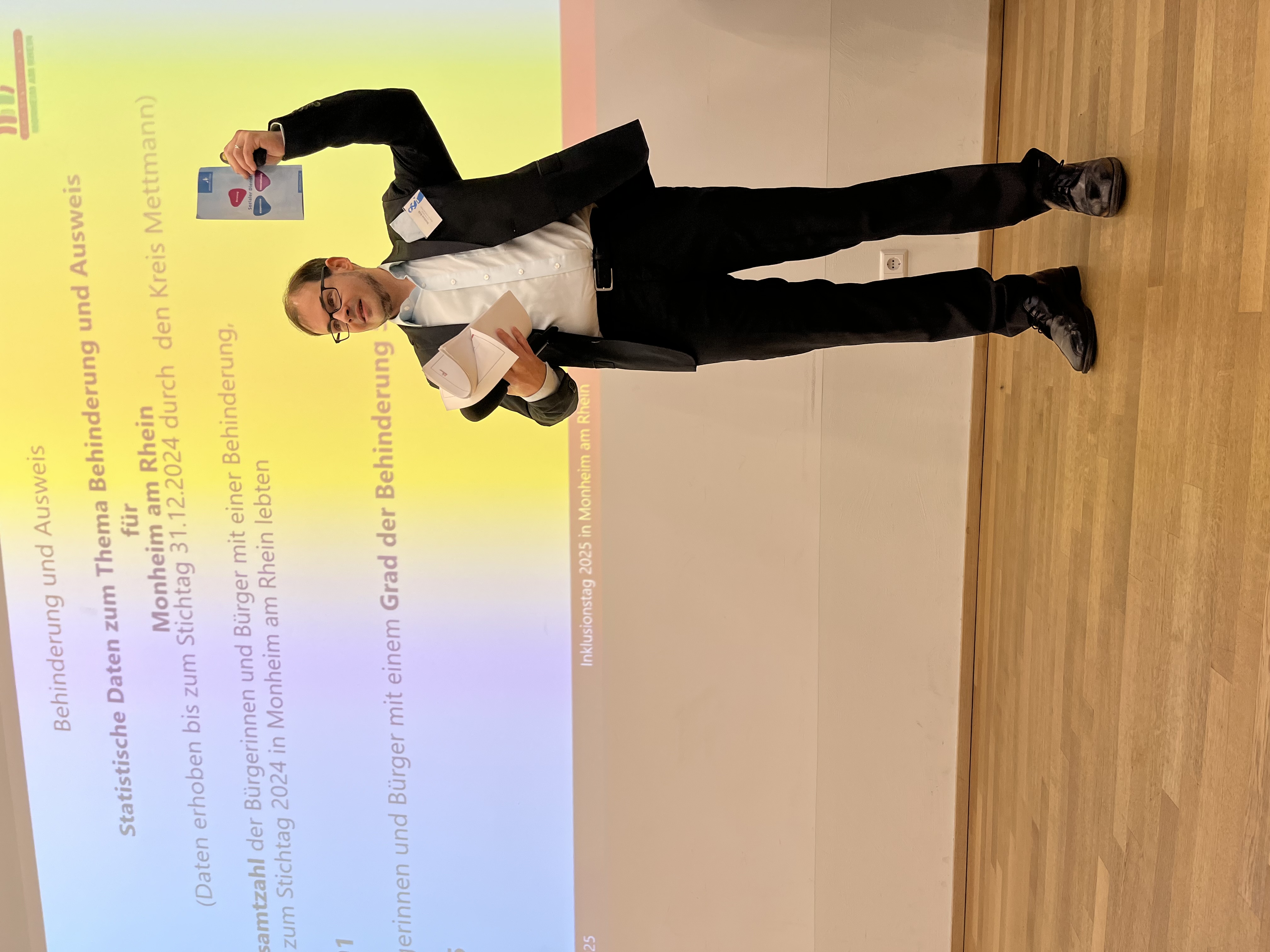 Der Inklusionstag fand statt am 15. November 2025. Der Inklusionstag wurde eröffnet von der Monderatorin Elena Lazaridou und einer Begrüßung und persönlichen Worten von Bürgermeisterin Sonja Wienecke. Danach stellte Mathias Kolk vom Sozialen Dienst der Stadt Monheim am Rhein die Dienstleistungen rund um das Thema Schwerbehinderung vor. Nach einer kurzen Pause für den weiterführenden Austausch gab Inklusionsbeauftragte Sarah Köpke-Lierz einen Einblick in die Arbeit am neuen Aktionsplan "Monheim inklusiv".