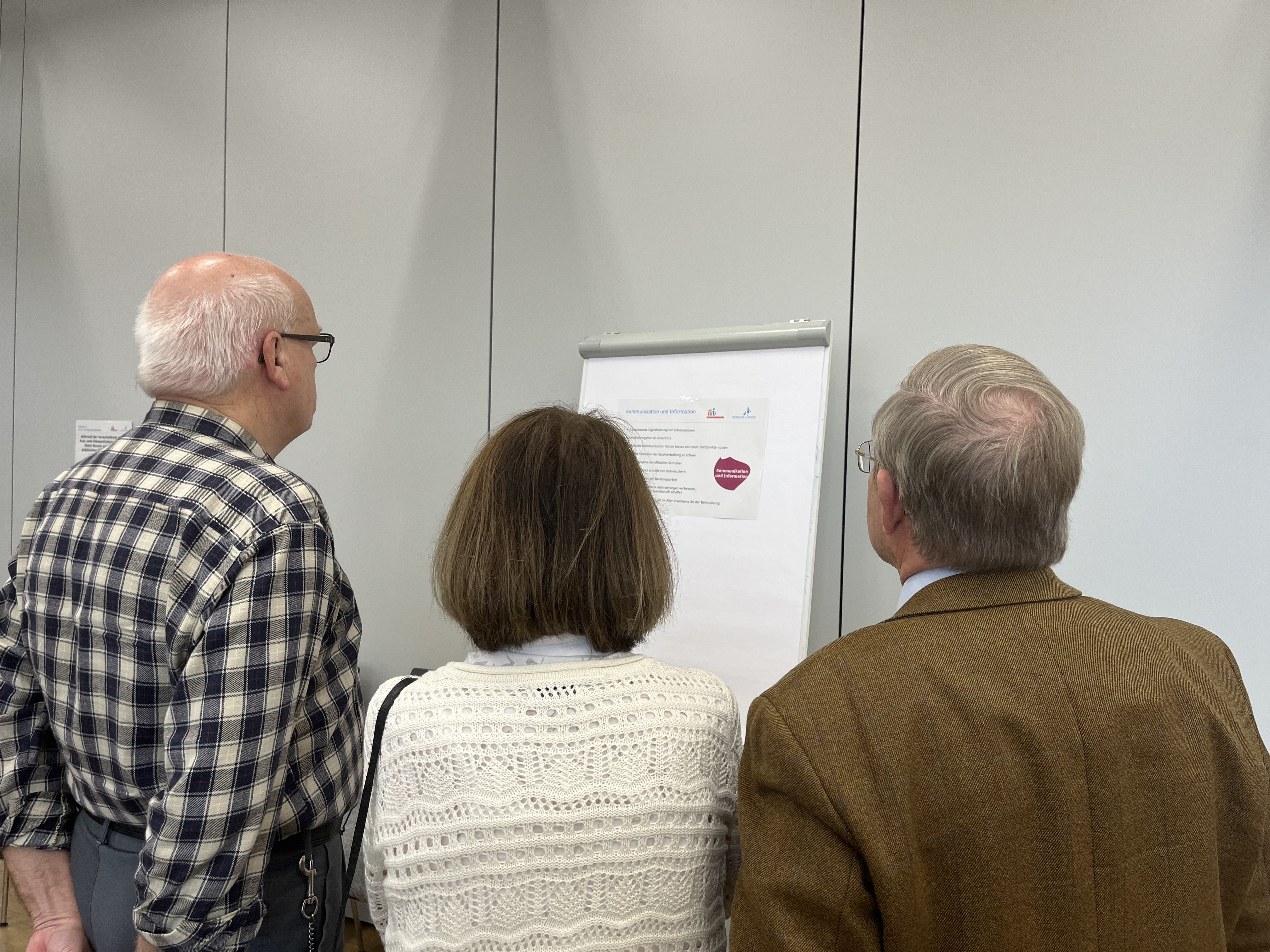 Danach begann die aktive Phase für die Teilnehmenden. Zu sechs wichtigen Themenbereichen zum Leben in der Stadt gab es je eine Stellwand. An den Stellwänden wurden die Ergebnisse aus der Online-Beteiligung zum Thema Inklusion präsentiert, die durch die Teilnehmenden ergänzt, gewichtet und kommentiert werden konnten. In vielen regen Gesprächen wurden einige weitere Anregungen auf den Stellwänden platziert, die im Anschluss von Frau Lazaridou und Frau Köpke-Lierz mit den Teilnehgmenden disktutiert und eingeordnet wurden.