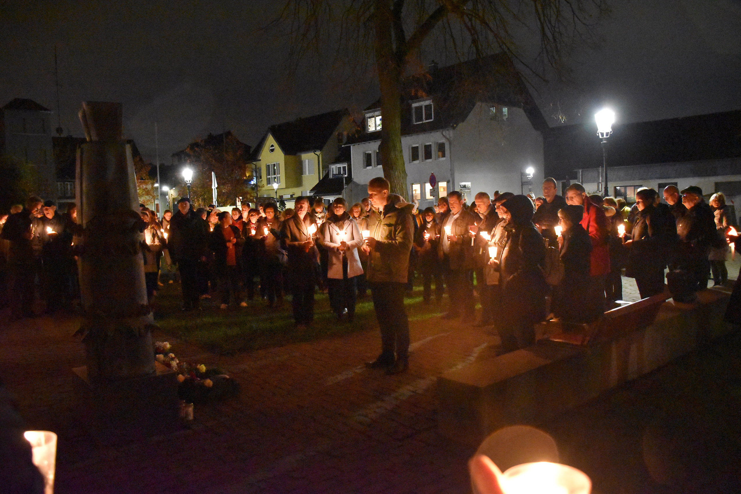 Dabei schlug er den Bogen von eben jenem 9. November vor 85 Jahren, über die jüngsten Monheimer Debatten rund um die Unterbringung von Geflüchteten – mit teilweise offen zutage tretendem Rassismus – bis hin zum 7. Oktober dieses Jahres, an dem Israel von Mordkommandos der radikalen Terrororganisation Hamas in bestialischer Weise überfallen wurde. Zimmermann merkte an, der historische Vergleich sei problematisch, weil das Gedenken an die Vergangenheit zu schnell hinter den Schrecken der aktuellen Lage zurückzutreten drohe. Genau das dürfe jedoch auf keinen Fall geschehen. Dennoch zog er zumindest eine Parallele zwischen dem Menschenhass der Täter und deren brutaler Verblendung.