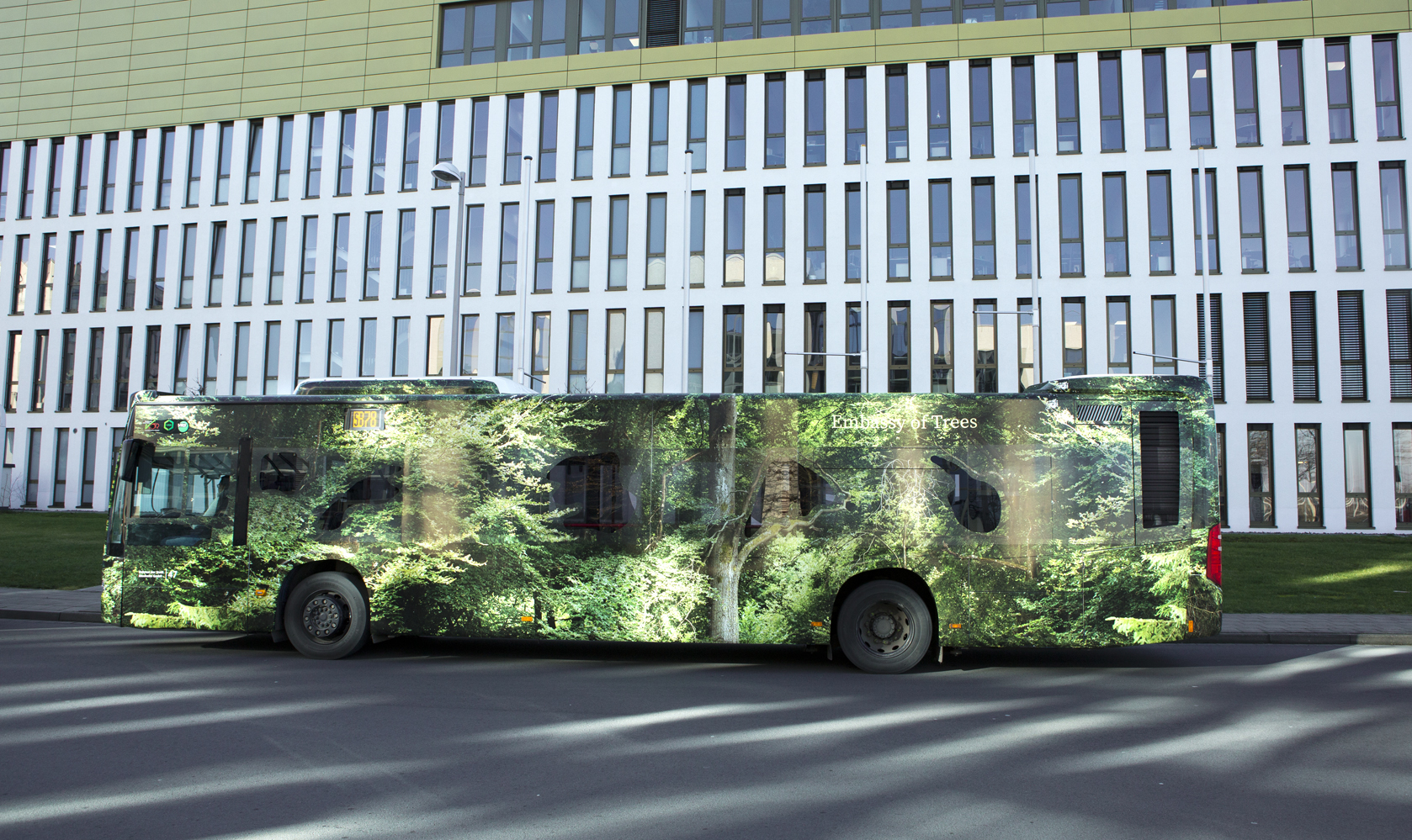 Natur im Linienverkehr: Mit der Aktion „Forest Bus“ der Fotokünstlerin Ellen Bornkessel setzen Monheims Bahnen (BSM) ein Zeichen für den Klimaschutz. Ein Bus der BSM ist seit zwei Monaten komplett mit einem Waldmotiv beklebt. Der Schritt in den Bus wirkt wie ein Eintritt in den Wald. Eigentlich sollte die Aktion bis Ende Mai dauern. Doch bei den Fahrgästen kommt sie so gut an, dass sie nun um zwei Monate verlängert wird.