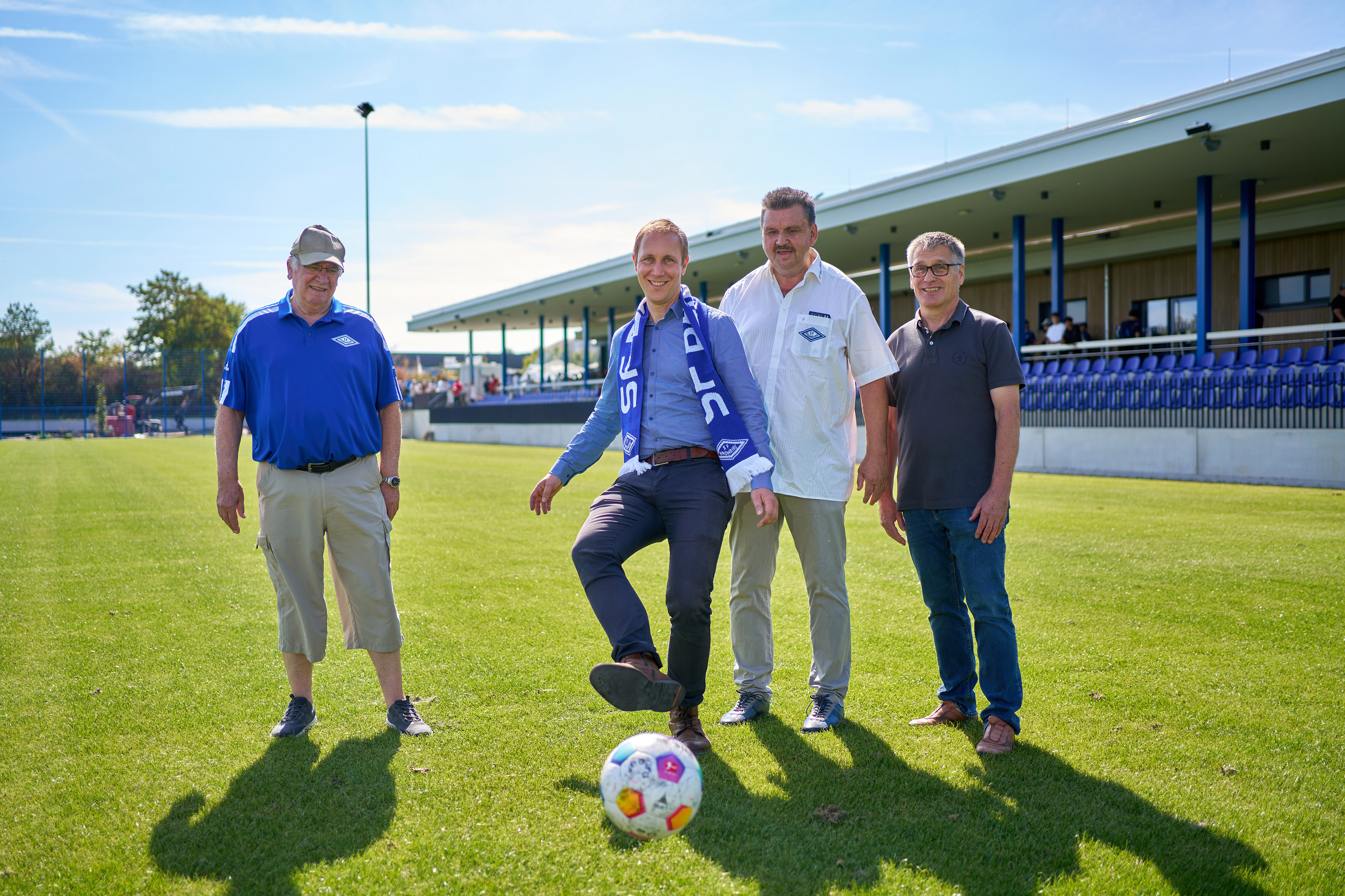 Und der so gelobte spielte den Ball gerne zurück. Die 22,6 Millionen Euro, die insgesamt für das Sportzentrum Kielsgraben bereitgestellt wurden, seien die größte Position, die die Stadt in den letzten Jahren in den Breitensport investiert habe. Zimmermann: „Ich bin mir sicher, dass sich das für die Vereine positiv auszahlen wird. Sichtbar wird dieser Quantensprung auch gerade hier, bei den Sportfreunden, wo wir rund um das Hauptspielfeld nun Platz für 1600 Zuschauerinnen und Zuschauer haben. Wir haben das gerne bereitgestellt, weil die Sportfreunde eben auch hervorragende Kinder- und Jugendarbeit leisten. Das ist gut investiertes Geld. Ich wünsche allen, die diese tolle Anlage künftig nutzen werden, viel Erfolg – natürlich sportlich, aber eben auch, was das Miteinander angeht.“