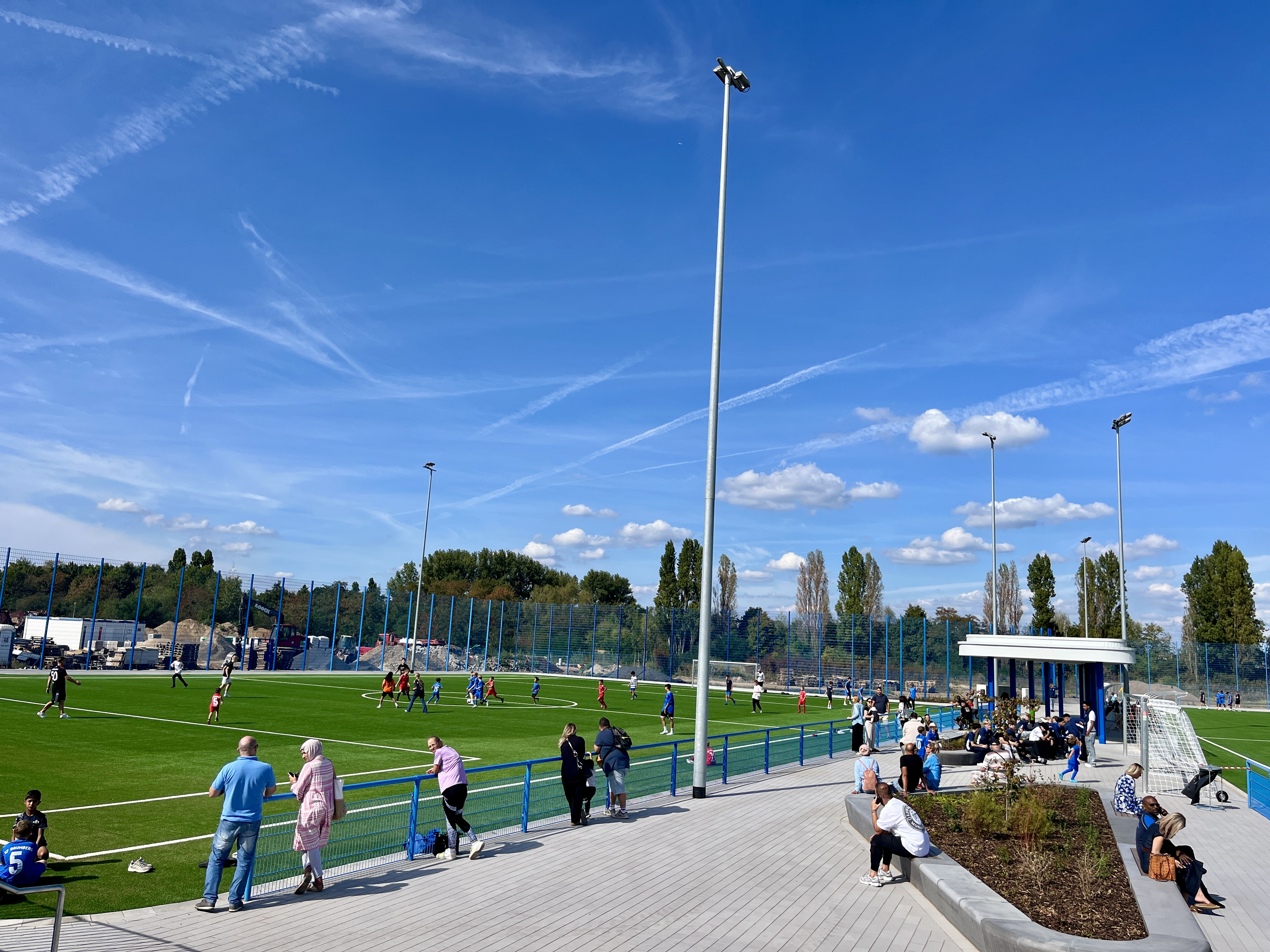 Die Übergabe bildete zugleich den Auftakt für den Spiel- und Trainingsbetrieb. Die Stadt hat für den Verein und seine rund 700 Mitglieder insgesamt 12,8 Millionen Euro investiert, davon 4,8 Millionen Euro in das Funktionsgebäude und weitere 8 Millionen Euro in die Sport- und Außenanlagen. 400 der aktiven Sportfreunde sind Kinder und Jugendliche.