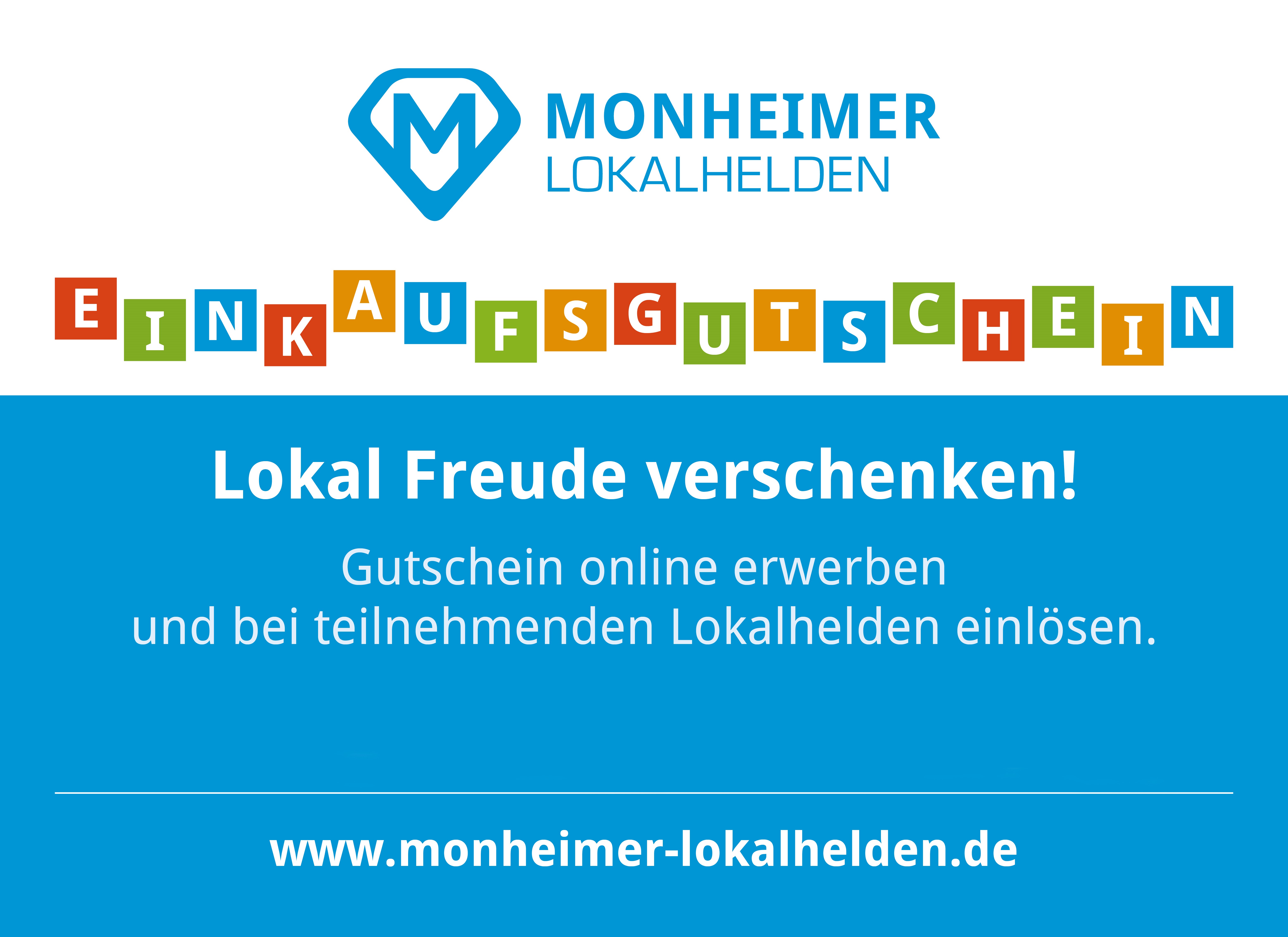 www.monheimer-lokalhelden.de, auf der sich Monheimer Anbieterinnen und Anbieter zusätzlich online präsentieren können. Ab sofort sind auf der Plattform auch Monheimer Einkaufsgutscheine erhältlich, die für mehr als eine halbe Million verschiedene Produkte und Dienstleistungen eingelöst werden können.
