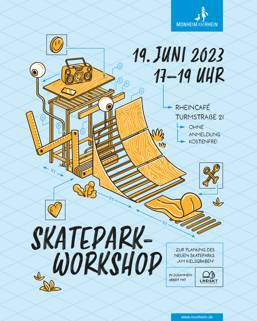 Der Skatepark entsteht im Sportzentrum am Kielsgraben zwischen den neuen Tennis- und Fußballplätzen und mit direktem Anschluss an die Baumberger Bürgerwiese. Geplant sind verschiedene Areale der Kategorien „Street“, „Park“, „Jump-Line“, Urban Sports wie Parcours und Calisthenics sowie Street-Art. In das Konzept des Kölner Planungsbüros für Skateparks LNDSKT sollen nun vor allem die Ideen der künftigen Nutzerinnen und Nutzer einfließen. „Die lokale Szene der genannten Sportarten ist nun aufgerufen sich zu beteiligen“, lädt Achim Wieghardt ein. „Bringt Eure konkreten Wünsche und Ideen für den zukünftigen Skatepark in Monheim am Rhein ein und kommt zum Workshop ins Rheincafé!“ (bh)