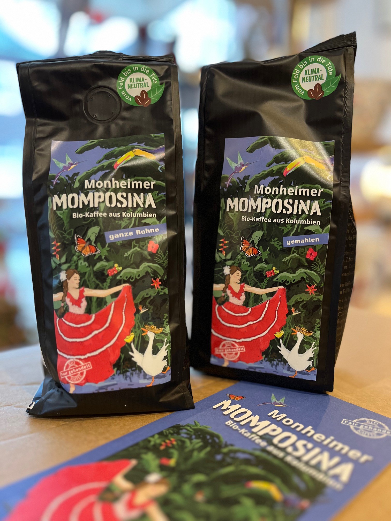 Der Monheimer Momposina Kaffee ist mild-aromatisch und besteht aus 100 Prozent Arabica Bohnen. Es gibt ihn gemahlen oder in ganzen Bohnen unter anderem in der Monheimer Gewürzmanufaktur und im Teehaus am Rathaus. Auch im Kultur- und Tourismuscenter der Monheimer Kulturwerke, Ingeborg-Friebe-Platz 19, können Interessierte den fairen Kaffee in Kürze kaufen.