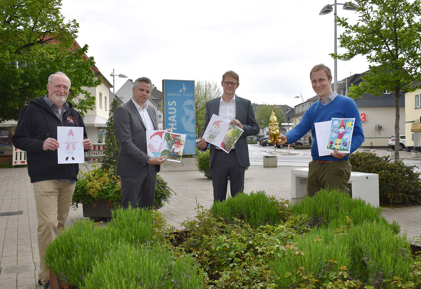 Das Monheimer Stadtfest musste auch in diesem Jahr noch einmal ausfallen – die Stadtwette nicht! Mitte Mai hatten die beiden Niederlassungsleiter der im Rheinpark ansässigen Firma Goldbeck, Björn Bongartz und Ralf Linde, gegen Bürgermeister Daniel Zimmermann gewettet, er würde es bis zum angedachten Stadtfest-Wochenende vom 11. bis 13. Juni nicht schaffen, 400 selbst gemalte, gebastelte oder fotografierte Gartenzwerge von den Monheimerinnen und Monheimern eingesendet zu bekommen. Sie haben verloren. Gewinner sind die Kinder auf dem Abenteuerspielplatz Monheim am Rhein.