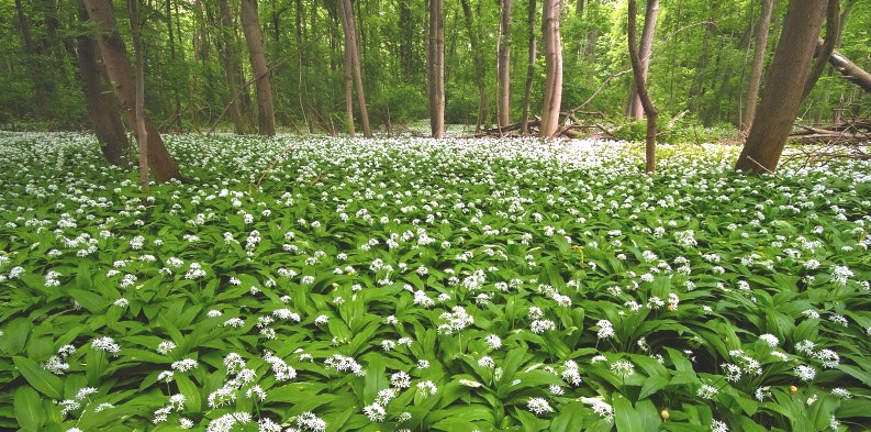 Der Auwald, der bei Rheinhochwasser teils überschwemmt wird, bietet eine artenreiche Vegetation. Neben Pflanzen wie Scharbockskraut, Moschuskraut und Buschwindröschen können bei günstigem Wetter auch Frühlingspilze entdeckt werden, zum Beispiel Maipilz, Lorcheln, Morcheln, Anemonenbecherling oder Judasohr. Wildgemüse ist im Frühjahr am schmackhaftesten. Dazu gehört unter anderem der Bärlauch, der aber nicht mit seinen giftigen Verwandten Maiglöckchen, Salomonssiegel, Einbeere oder Aronstab verwechselt werden darf. Vor Ort entdecken interessierte Teilnehmer die unterschiedlichen Merkmale.