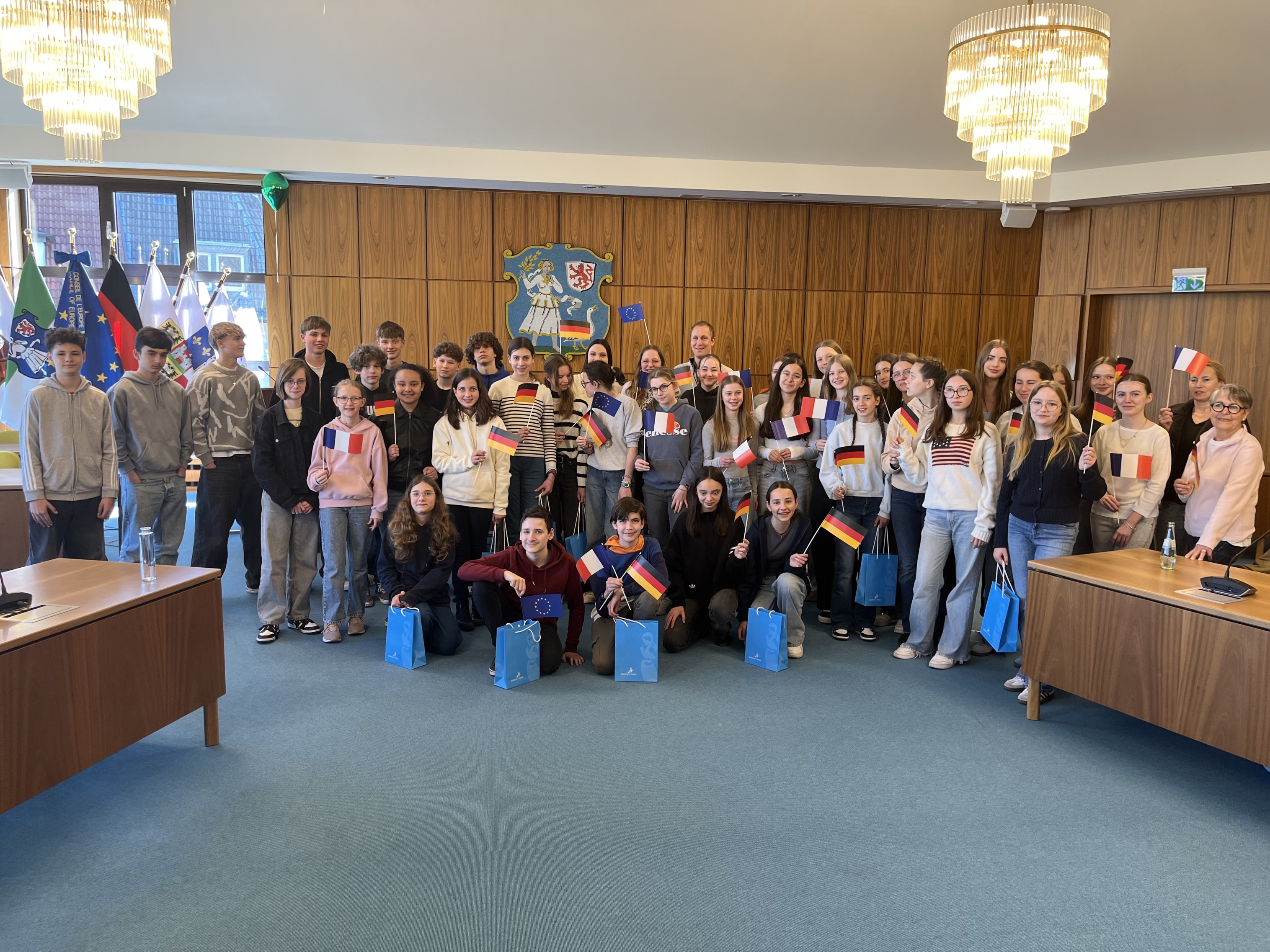Mit einem Empfang im Ratssaal startete der Montag nach dem Frühlingsfest. Gemeinsam mit dem Freundeskreis aus Monheim am Rhein wurden die Gäste aus Frankreich von Bürgermeister Daniel Zimmermann willkommen geheißen. Zum weiteren Besuchsprogramm zählte ansonsten ein Besuch im Neandertalmuseum in Mettmann, aber auch viel Zeit gemeinsam mit der Gastfamilie.