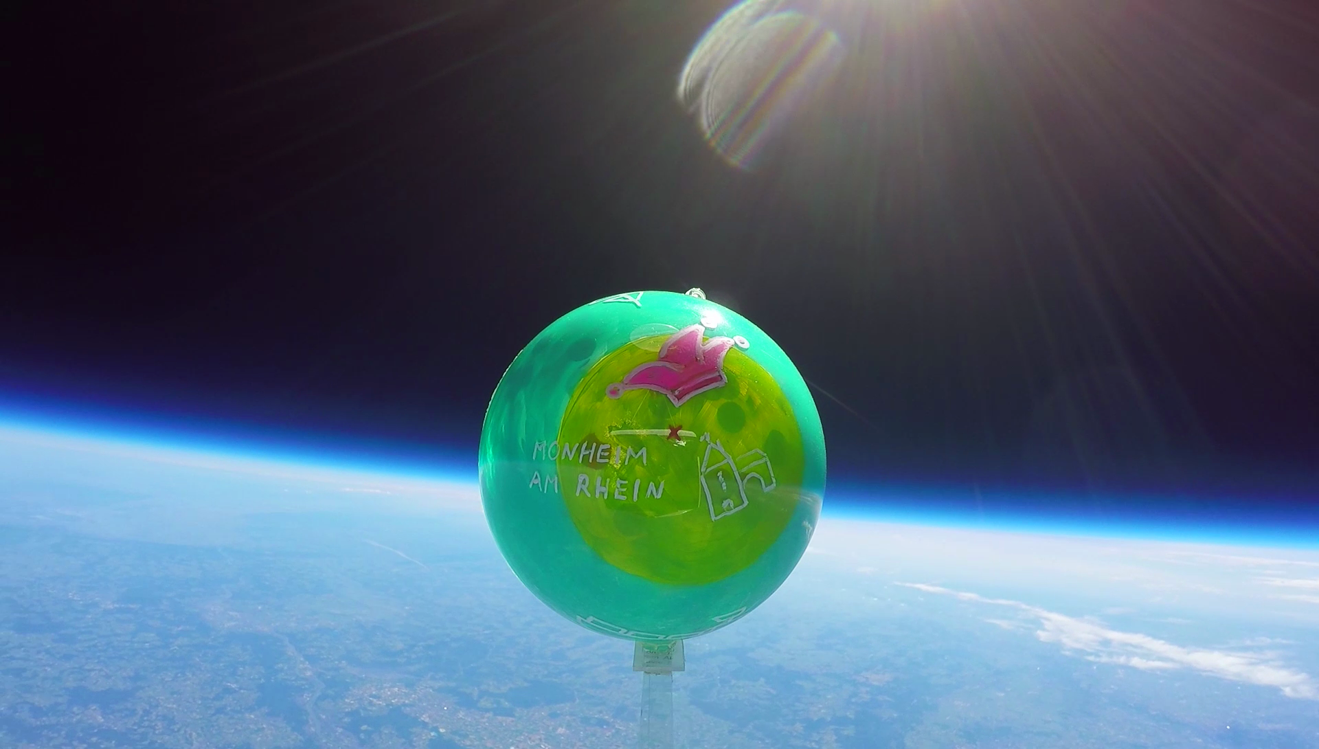 Die beiden mit auf die Reise geschickten Kameras lieferten spektakuläre Bilder, die Monheim am Rhein und den Rest der Welt aus einer ganz anderen Perspektive zeigen – und die am Ende, in der Stratosphäre angelangt, sogar bereits die Erdkrümmung deutlich werden lassen. Das bei der Aktion entstandene Video mit atemberaubend schönen Aufnahmen und den rührenden Botschaften der Monheimer Kinder gibt es ab sofort auch auf der städtischen Homepage im Bereich der Kunstschule sowie auf der städtischen Facebookseite und in unserem