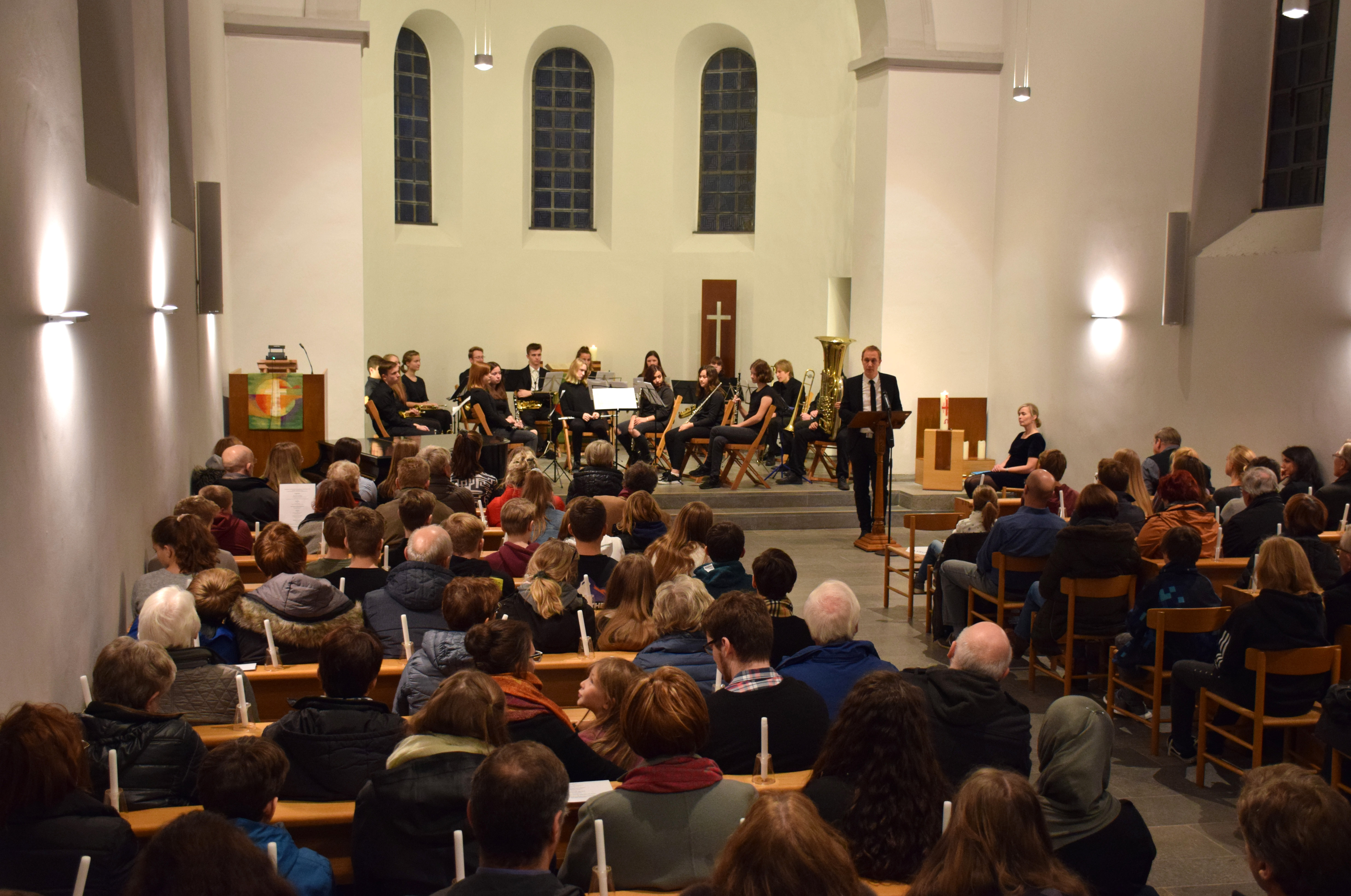 Obwohl er diesen Abend nun schon seit über 30 Jahren kenne und begleite, habe die Qualität an diesem Samstag für ihn doch etwas Besonderes, hob Pfarrer Falk Breuer in seiner Ansprache und mit Blick in seine bis fast auf den letzten Platz gefüllte Kirche hervor. „Er ist etwas besonders, weil ich erlebe, dass immer mehr junge Menschen an diesem Abend zu uns kommen. Und es ist wichtig, dass ihr alle da seid“, betonte Breuer in Richtung der zahlreichen Schülerinnen und Schüler, die nicht nur aktiv das Programm mitgestalteten, sondern auch zahlreich in den Sitzreihen und bis hinauf auf die Empore Platz genommen hatten, um der Gedenkstunde beizuwohnen. Früher, so Breuer habe man schon häufiger mal Sätze gehört wie: „Was ihr da macht, geht mich doch eigentlich nichts an. Das ist die Geschichte meiner Großeltern oder Urgroßeltern.“ Doch nach dem jüngsten Anschlag auf die Synagoge in Halle und der Landtagswahl in Thüringen, bei der sich über 23 Prozent der Wählerinnen und Wähler für eine Partei entschieden hatten, deren Bundevorsitzender ganz offiziell sagen durfte, dass jene 12 Jahre von 1933 bis 1945 „ein Vogelschiss in der über 1000-jährigen Geschichte des Deutschen Volkes“ seien, sei ein Haltungswandel zu erkennen, so der evangelische Pfarrer. „Da ist das Erinnern, so wie wir es hier heute Abend tun, offenkundig nötiger denn je. – Schön und wichtig also, dass, wie hier gemeinsam ein Zeichen gegen Ausgrenzung, Terror und Gewalt setzen.“