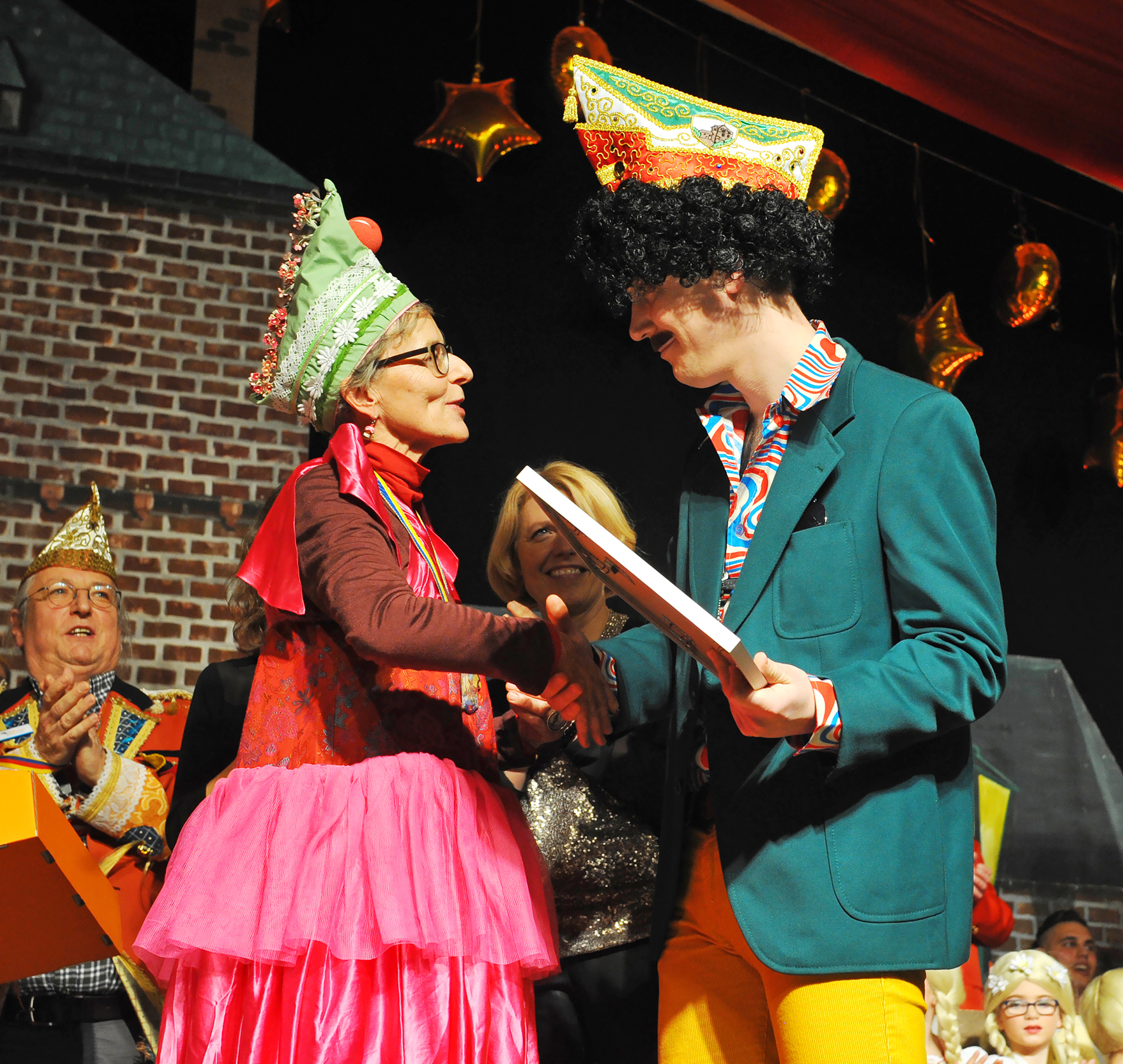 Laudatorin Heike Dongowski, Referentin für entwicklungspolitische Grundsatzfragen in der Staatskanzlei NRW, sprach der Stadt im Namen der nordrhein-westfälischen Landesregierung ihre „FairEhrung“ aus. „Bei Prinzessin Heike und Prinz Holger auf’m Wagen, da lagern faire Monkeys und Schokoladen. Kamelle aus’m Fairen Handel, sorgt auf der Welt für’n echten Wandel“, reimte sie in ihrer kreativen Lobrede.