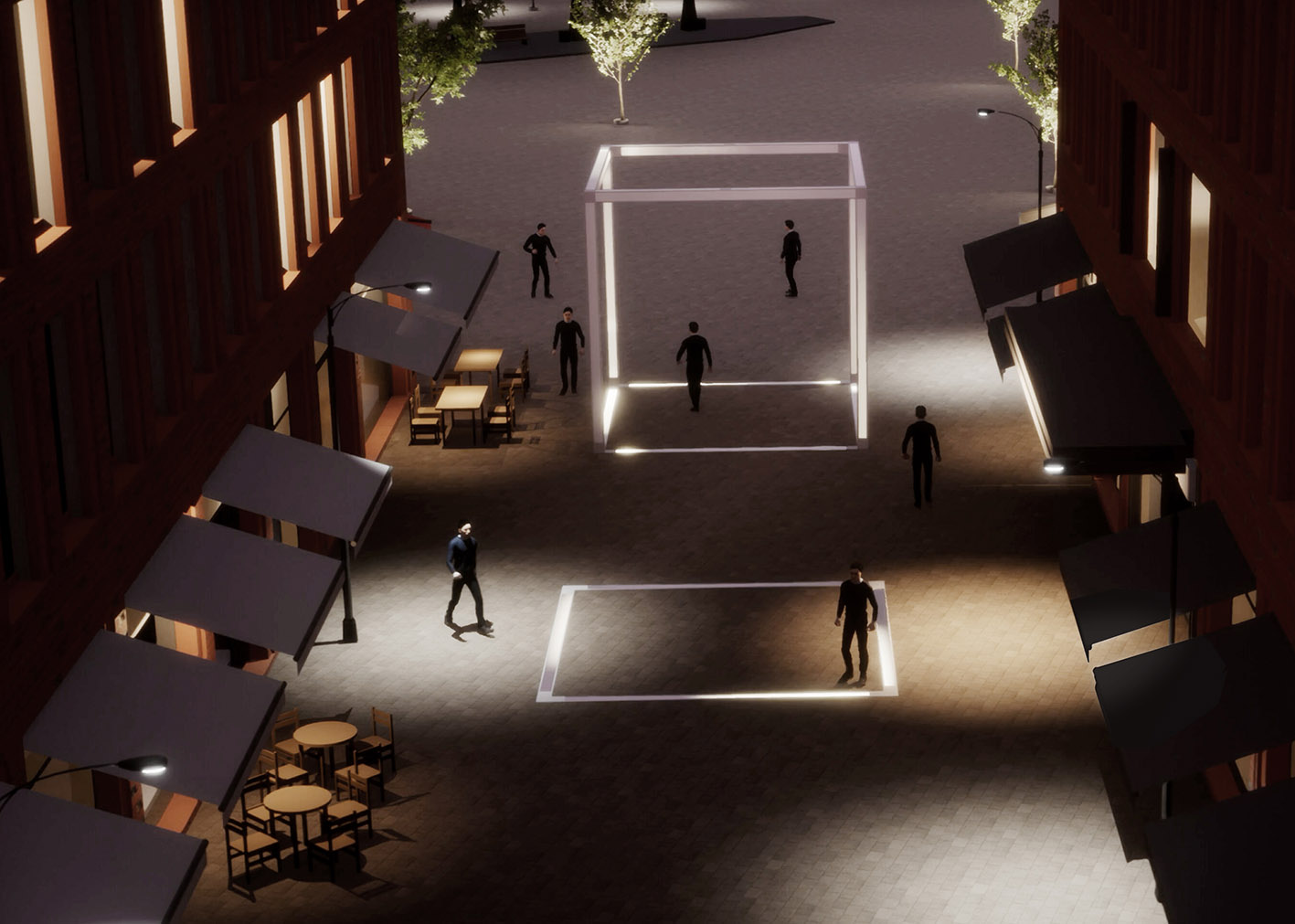 Die zweite künstlerische Position wird Mischa Kuball (*1959 in Düsseldorf) für Monheim am Rhein erschaffen. Er setzt die Interaktion mit der Umgebung auf elektronische Weise fort. Sein Werk „Monheim Cubes“ wird Klang und Licht miteinander kombinieren und aus zwei Kuben bestehen. Es soll auf dem neuen Boulevard, der künftig den Busbahnhof mit dem Eierplatz verbindet, installiert werden. Einer der Kuben wird dabei fünf Meter in die Höhe ragen. Es handelt sich dabei um einen 3D-Würfel, der aus einer Metallkonstruktion mit LED-Ummantelung geformt wird. Der zweite Kubus wird hingegen so wirken, als sei er im Boden versenkt. Nur sein oberes Quadrat ist zu sehen. Kuball wagt mit dieser Arbeit sogar für ihn selbst etwas Neues: Erstmals spielt bei ihm Partizipation eine tragende Rolle. Denn die künftige Leuchtintensität der Skulptur wird sich durch die Bewegungen der Passantinnen und Passanten verändern. Je näher eine Person dem dreidimensionalen Kubus kommen wird, umso heller wird er demnächst aufleuchten. Der Konzeptkünstler will auf diese Weise ein interaktives Wechselspiel zwischen der einerseits statischen, architektonischen Situation des neugestalteten Boulevards und der natürlichen, organischen Bewegungen der Menschen erschaffen. Und auch die Intensität der Sound-Elemente wird über die Bewegungen der Passantinnen und Passanten gesteuert. Die Klanginstallation wird in Kooperation mit der Monheim Triennale und dem Klangkunst Festival entstehen. Auch hierüber wird also ein direkter Bezug zur Stadt geschaffen. Der Sound wird dabei nur in dem hohen Kubus selbst zu hören sein und in die Höhe abstrahlen. In den anliegenden Restaurants, Geschäften und Büros wird er hingegen nicht zu hören sein.