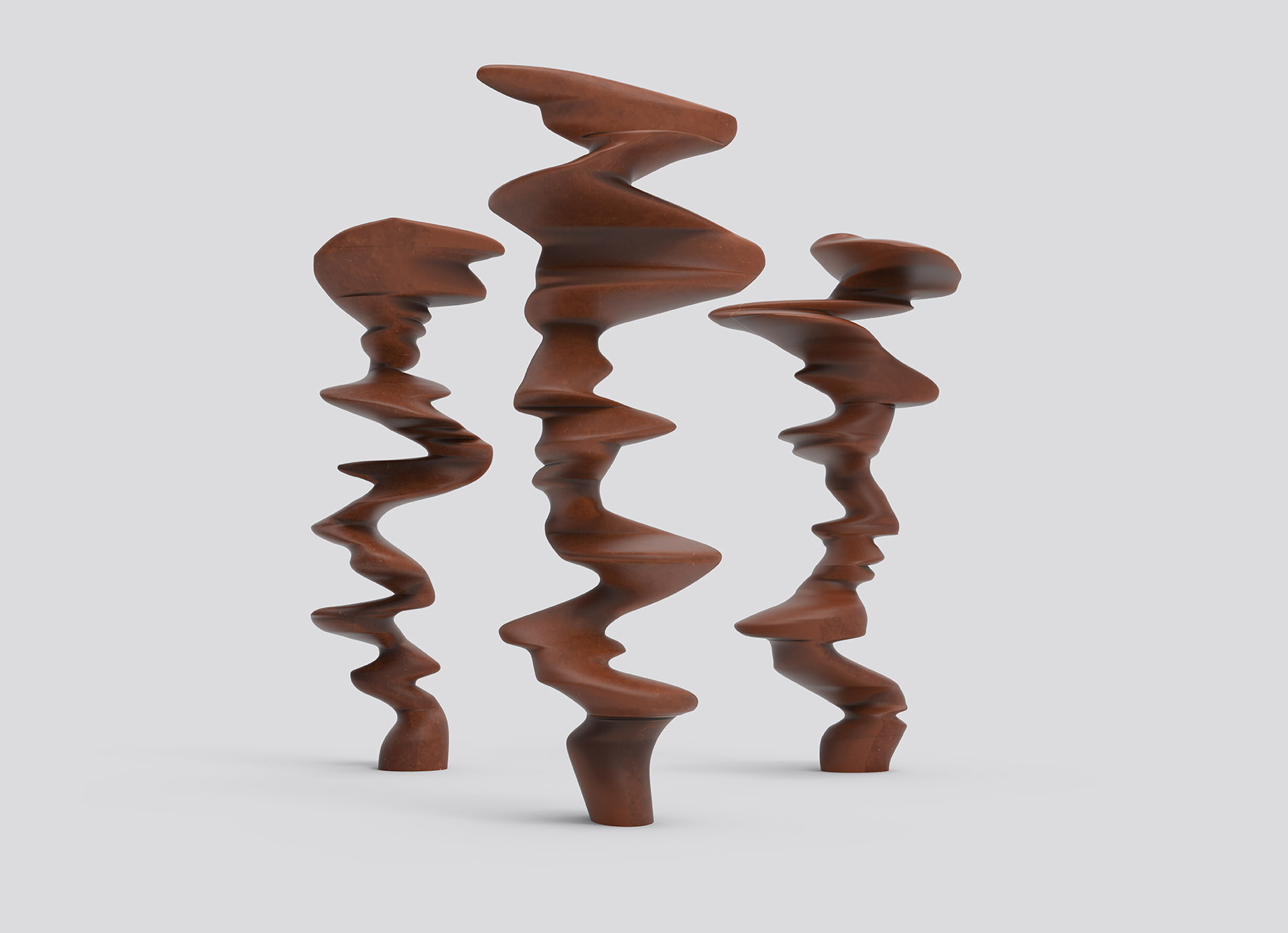 Den Auftakt zur neuen Kunstachse im Herzen der Stadt werden künftig drei zusammengehörende Bronze-Skulpturen des Bildhauers Tony Cragg (*1949 in Liverpool) bilden. Die von ihm für Monheim am Rhein vorgeschlagenen schwungvoll und jeweils rund fünfeinhalb Meter hoch emporstrebenden Raumkörper dürften dabei auf den ersten Blick zunächst eher abstrakt und zufällig wirken – doch sie sind es nicht. Der Professor und frühere Rektor der Düsseldorfer Kunstakademie verbindet in seinem Werk zwei Welten: die rationale und die emotionale. Durch den dynamischen Wechsel von Richtung und Volumen der von Cragg entworfenen Skulpturen scheint es, als wären die Säulen in Bewegung. „Genau so, wie die Stadt Monheim am Rhein“, so der nicht zuletzt auch durch die Documenta in Kassel weltberühmte Künstler. Die einander zuwandten geometrischen Säulen werden den Passantinnen und Passanten der neuen Monheimer Mitte bald aus jeder Blickrichtung neue Perspektiven schaffen und sie dabei sogar verschiedene Gesichter in den Skulpturen erkennen lassen. In dem sich die Bewegungen der Menschen in dem Kunstwerk spiegeln, wird die direkt im Boden verankerte und auf keinem Sockel stehende Figurengruppe im Zusammenspiel mit den sie umströmenden, zwischen ihr hindurchlaufenden und sie berührenden Menschen trotz ihrer statischen Form bald zu einem pulsierenden Spiel voll kraftvoller Energie erwachen. Tony Craggs „Drei tanzende Säulen“ werden zwischen dem Monheimer Busbahnhof und dem Monheimer Tor platziert. Ein starkes Entree, dass die Lebendigkeit und Dynamik der Stadt wiederspiegelt. Ein neuer Ort, an dem durch Kunst Emotionen hervorgerufen werden.