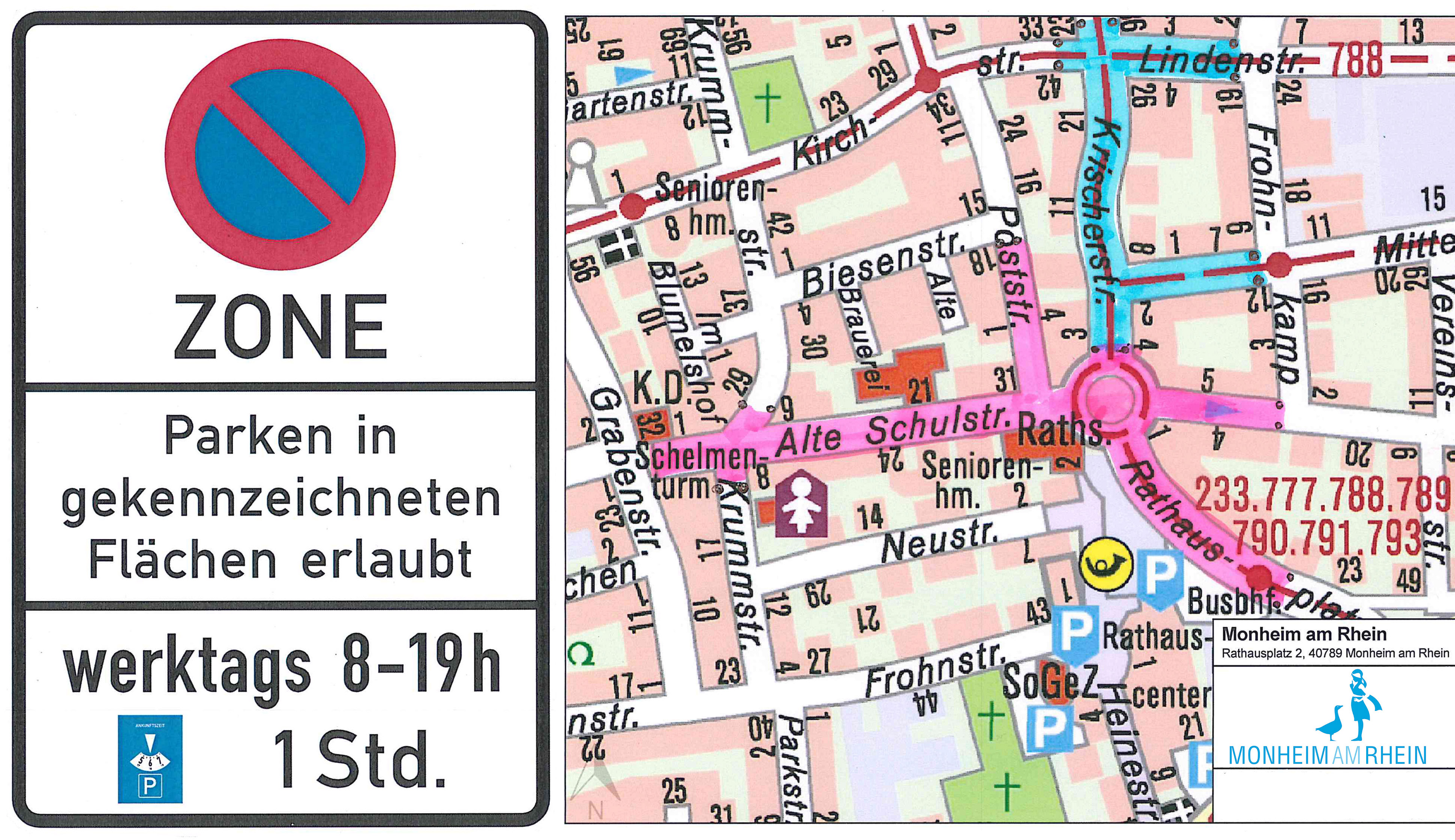 Schon jetzt ist es so, dass die Alte Schulstraße, sowie Abschnitte der Krumm- und Poststraße, des Gartzenwegs und der Straße Rathausplatz eine zusammenhängende Parkzone bilden, in der ein generelles Parkverbot außerhalb der markierten Flächen gilt, und in der auch auf diesen Flächen an allen Werktagen von 8 bis 19 Uhr grundsätzlich nur für eine Stunde mit bereitgelegter Parkscheibe gehalten werden darf. In diese Innenstadt-Zone wird nun auch die Krischerstraße, vom Rathausplatz bis hinauf zur Lindenstraße, aufgenommen. Teilbereiche der Lindenstraße und der Mittelstraße, jeweils bis zum Frohnkamp, kommen ebenfalls hinzu.