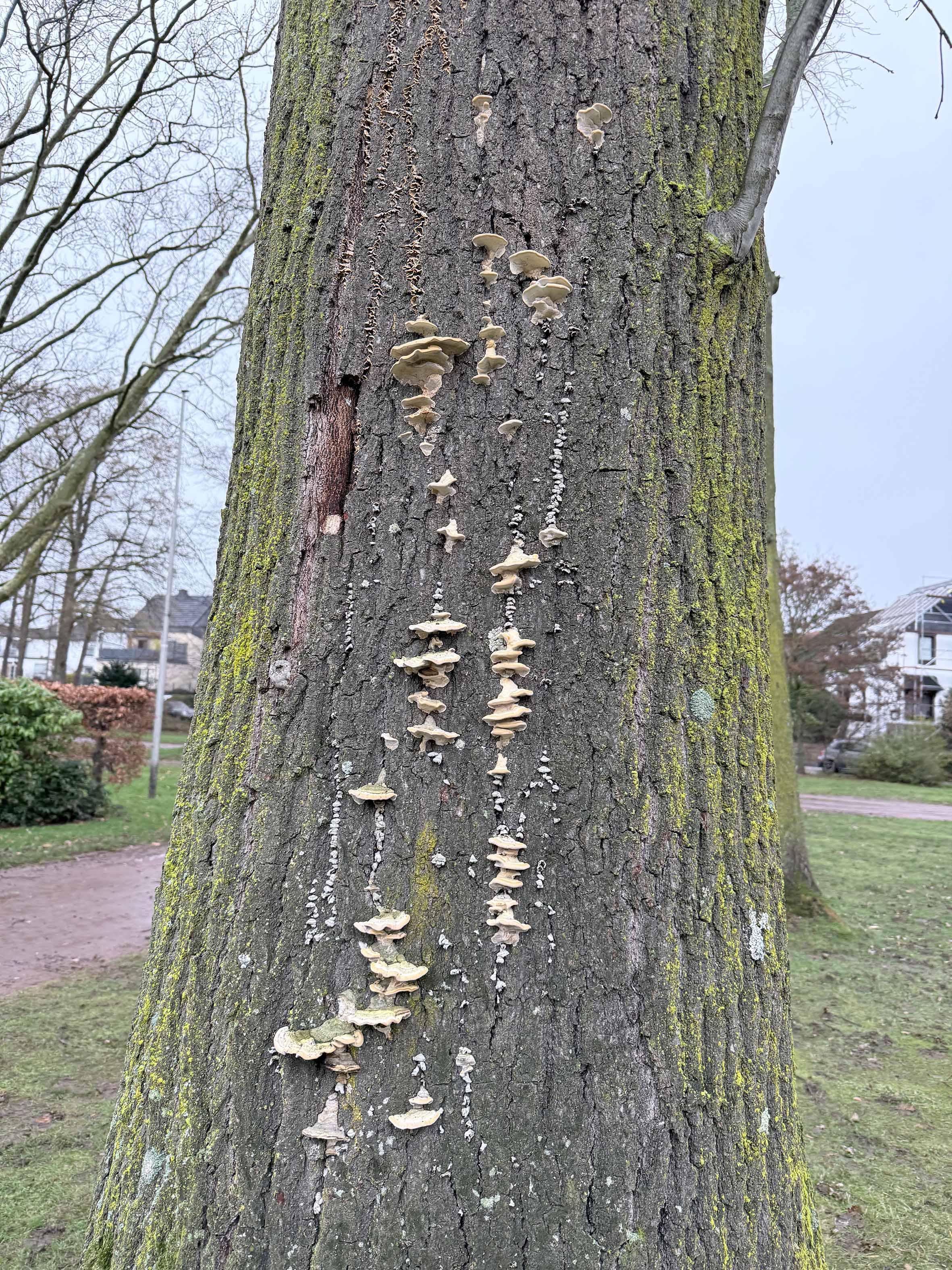Eine ebenfalls erkrankte Rotbuche muss in den kommenden Wochen im Marienburgpark entfernt werden. An ihrem Stamm sind bereits in zwei Etagen Fruchtkörper des Zunderschwammes zu sehen. „In den vergangenen Jahren haben wir hier mehrere Pflegemaßnahmen durchgeführt, aber wir können den Baum leider nicht mehr erhalten. Der Pilzbefall ist zu weit fortgeschritten. Die Fällung ist unvermeidbar und wird von Seiten der Stadt immer erst als allerletzte Maßnahme in Betracht gezogen“, erklärt Florian Schmidt. Etwa drei Meter des Stamms der Buche sollen aber als sogenanntes Habitat für Insekten und Vögel stehen bleiben. „So versuchen wir, der Natur soviel wie möglich zurückzugeben.“ (bh)
