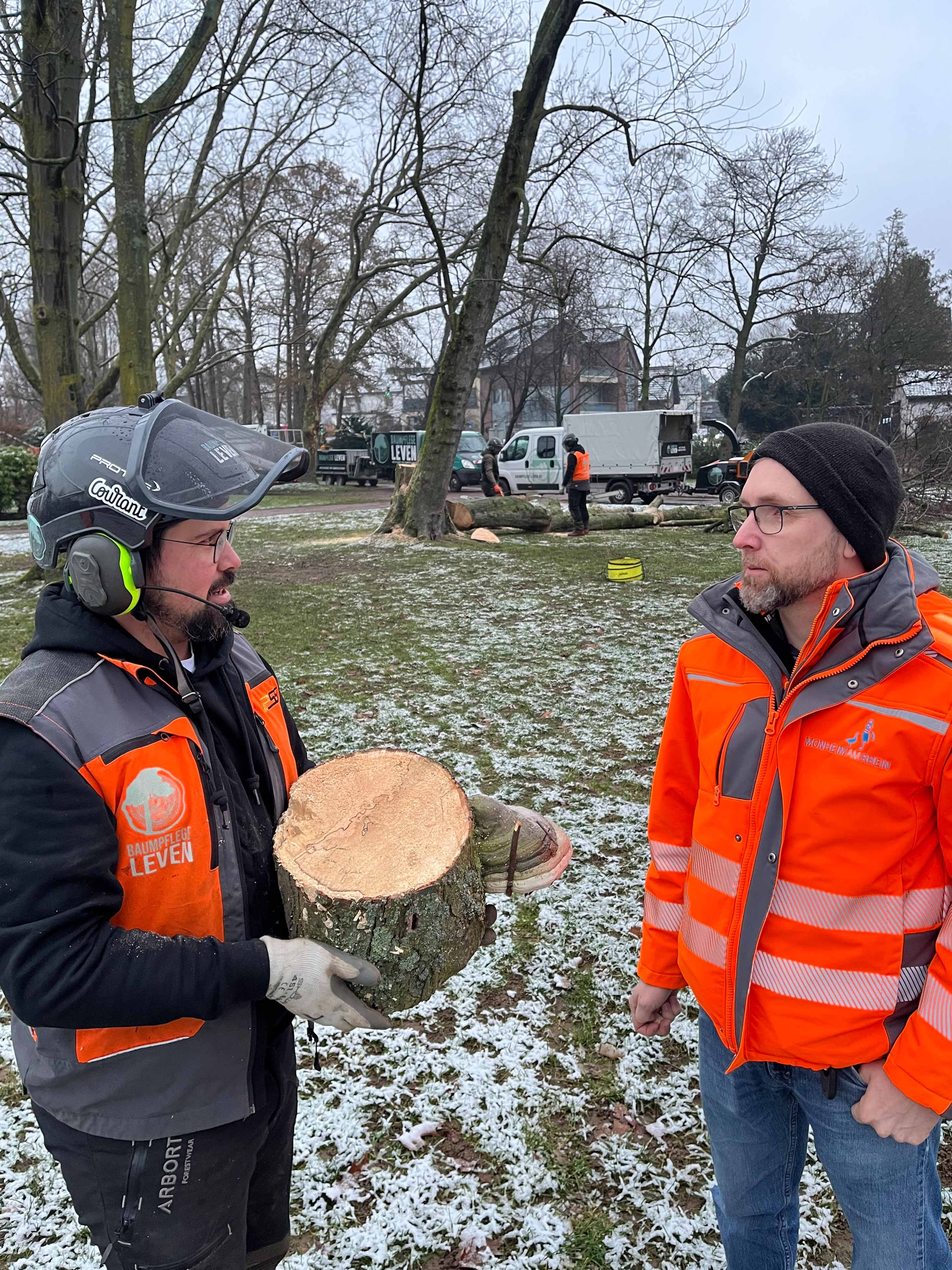 Im Park an der Kapellenstraße hat eine beauftragte Firma am Donnerstag, 29. Januar, eine Roteiche eingekürzt und einen Silberahorn gefällt. Pilzerkrankungen hatten beide Bäume so sehr geschwächt, dass ihre Standsicherheit bei starkem Wind gefährdet gewesen wäre.