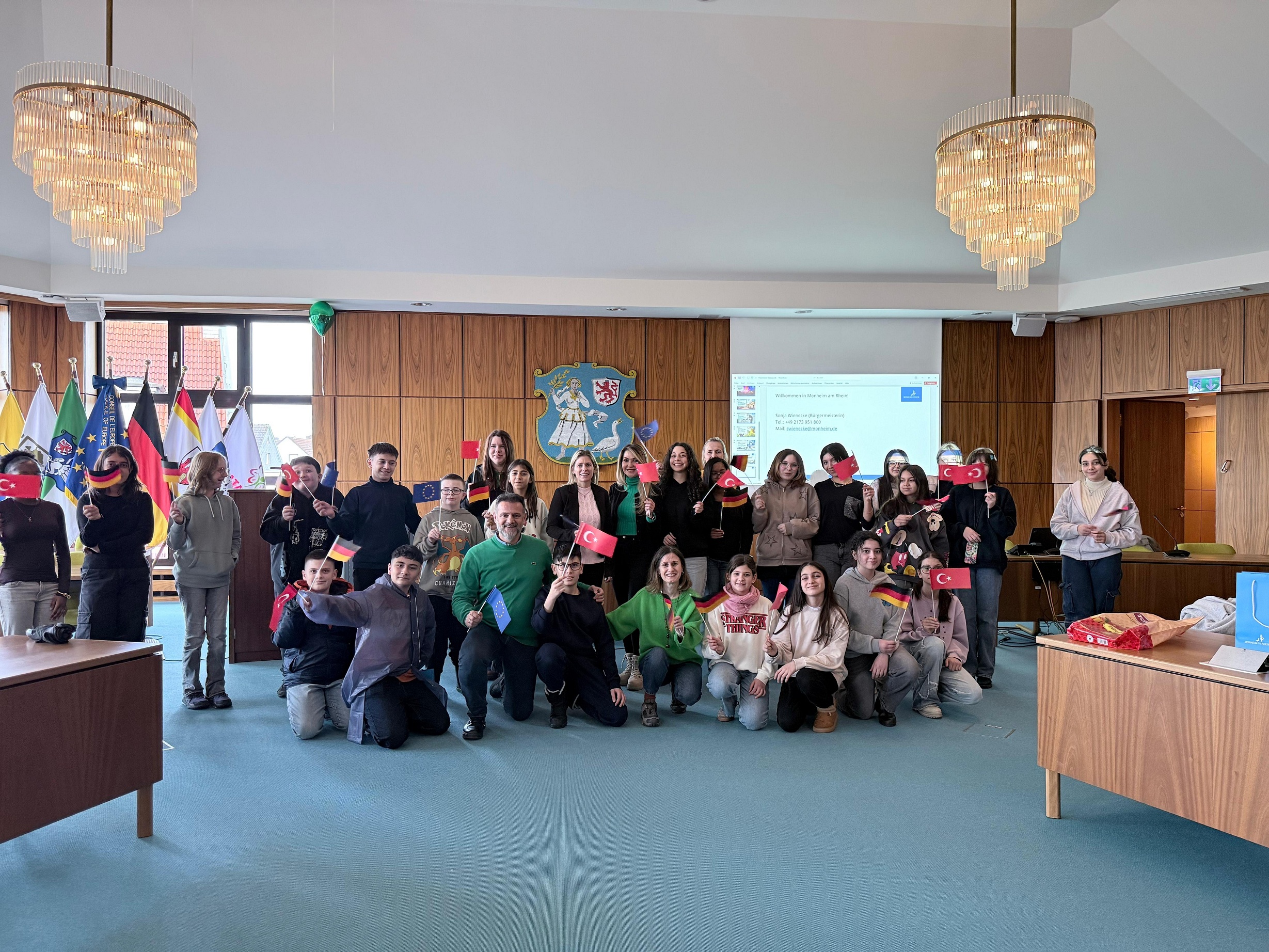 Ein besonderer Programmpunkt fand im Monheimer Rathaus statt: Die Austauschgruppe besuchte den Ratssaal und wurde dort von Bürgermeisterin Sonja Wienecke empfangen. In offener und freundlicher Atmosphäre tauschten sich die Bürgermeisterin sowie die Schülerinnen, Schüler und Lehrkräfte aus Ataşehir über ihre Erfahrungen und Eindrücke aus.