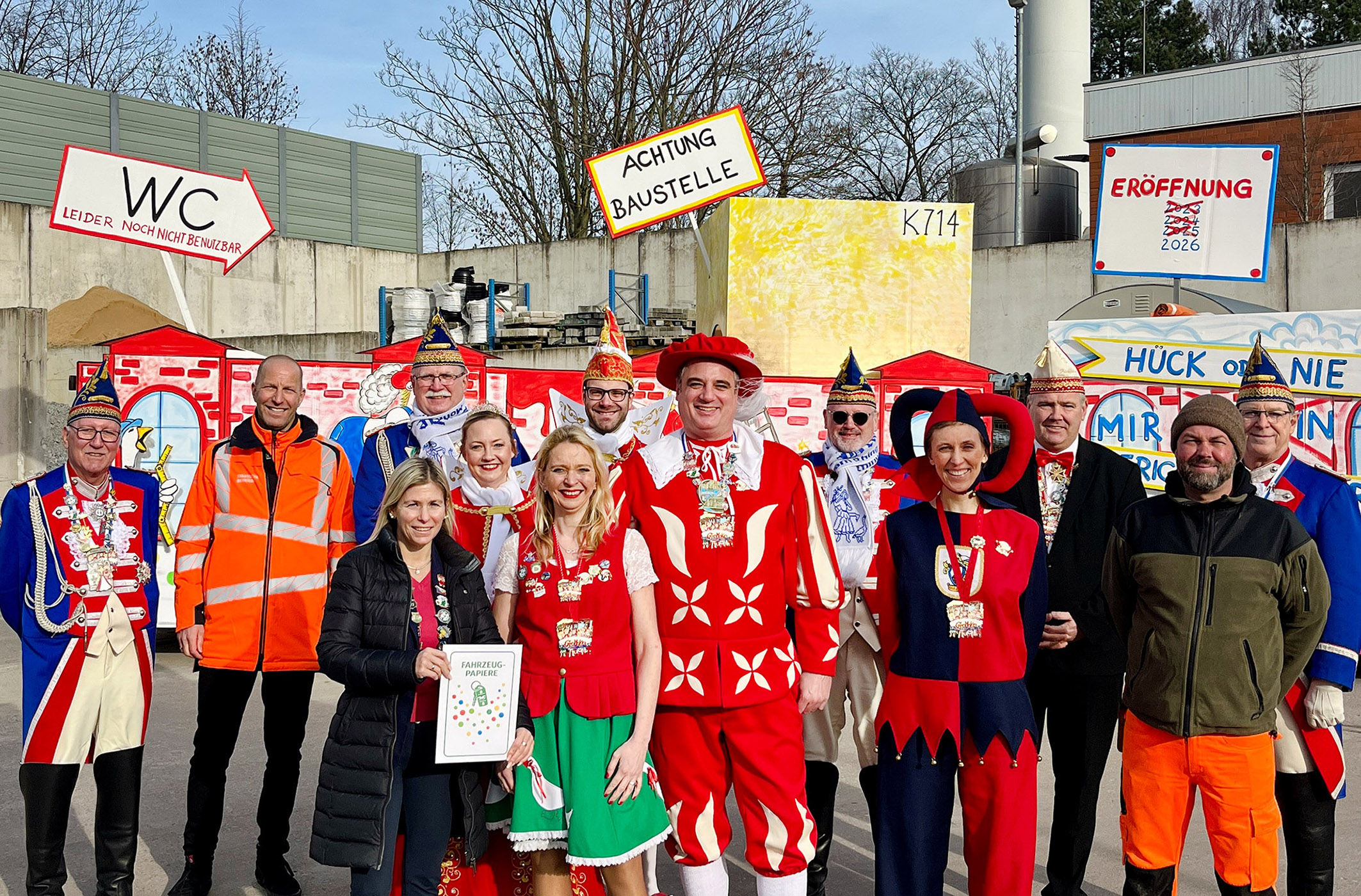 Die Stadt Monheim am Rhein stellt auch in diesem Jahr wieder den Gänselieselwagen für den Monheimer Rosenmontagszug. Eine Woche vor dem Anrollen des närrischen Lindwurms hat Bürgermeisterin Sonja Wienecke jetzt auf dem städtischen Betriebshof die Wagenpapiere an Gänseliesel Nina, Spielmann Arne und Schelm Anuschka übergeben.