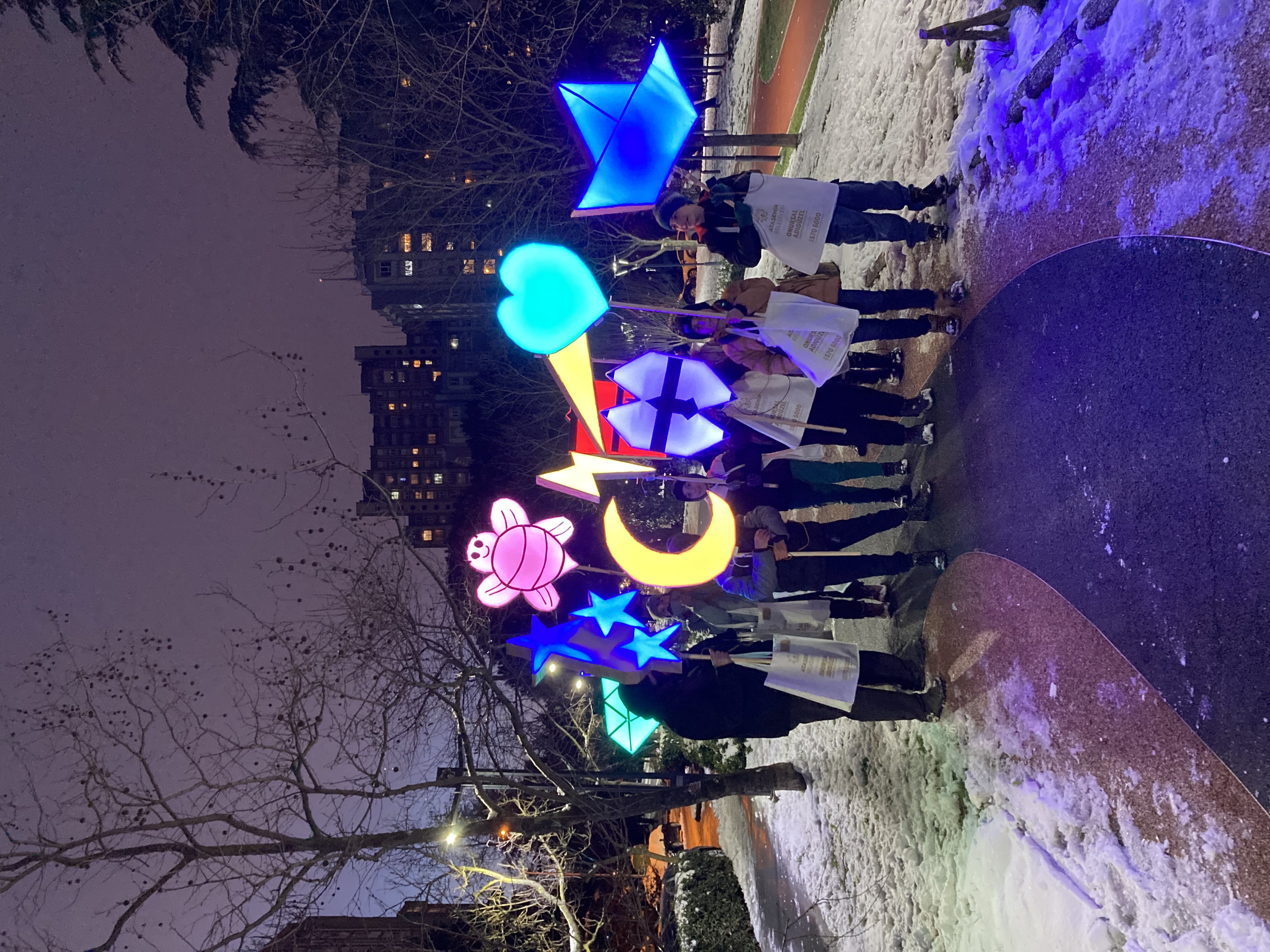 Das Projekt trägt den Titel „Irrlichter“ (türkisch: dolaşan ışık). Aus Pappen wurden Motiv-Leuchtkästen gebaut, die mit mehrfarbig leuchtenden LED-Bändern bestückt und mit fluoreszierender Folie beklebt wurden. An einem Holzstiel befestigt und mit einer tragbaren Batterie und einer Fernbedienung ausgestattet, konnten die Jugendlichen ihre Lichtobjekte in einer Performance in der Stadt präsentieren. Als es dunkel wurde, erstrahlte die bunte Lichtkunst an verschneiten Orten im Zentrum Ataşehirs und wurde so Teil einer Prozession, die insgesamt mehr als 2000 km und sieben Ländergrenzen überwand.