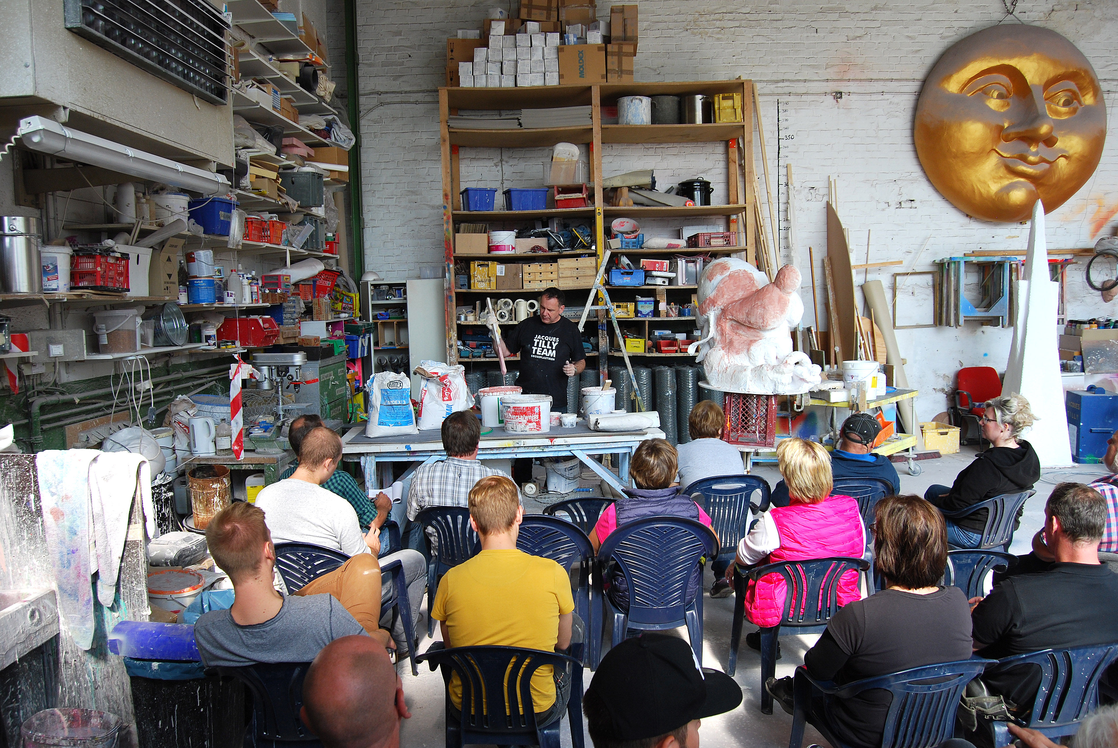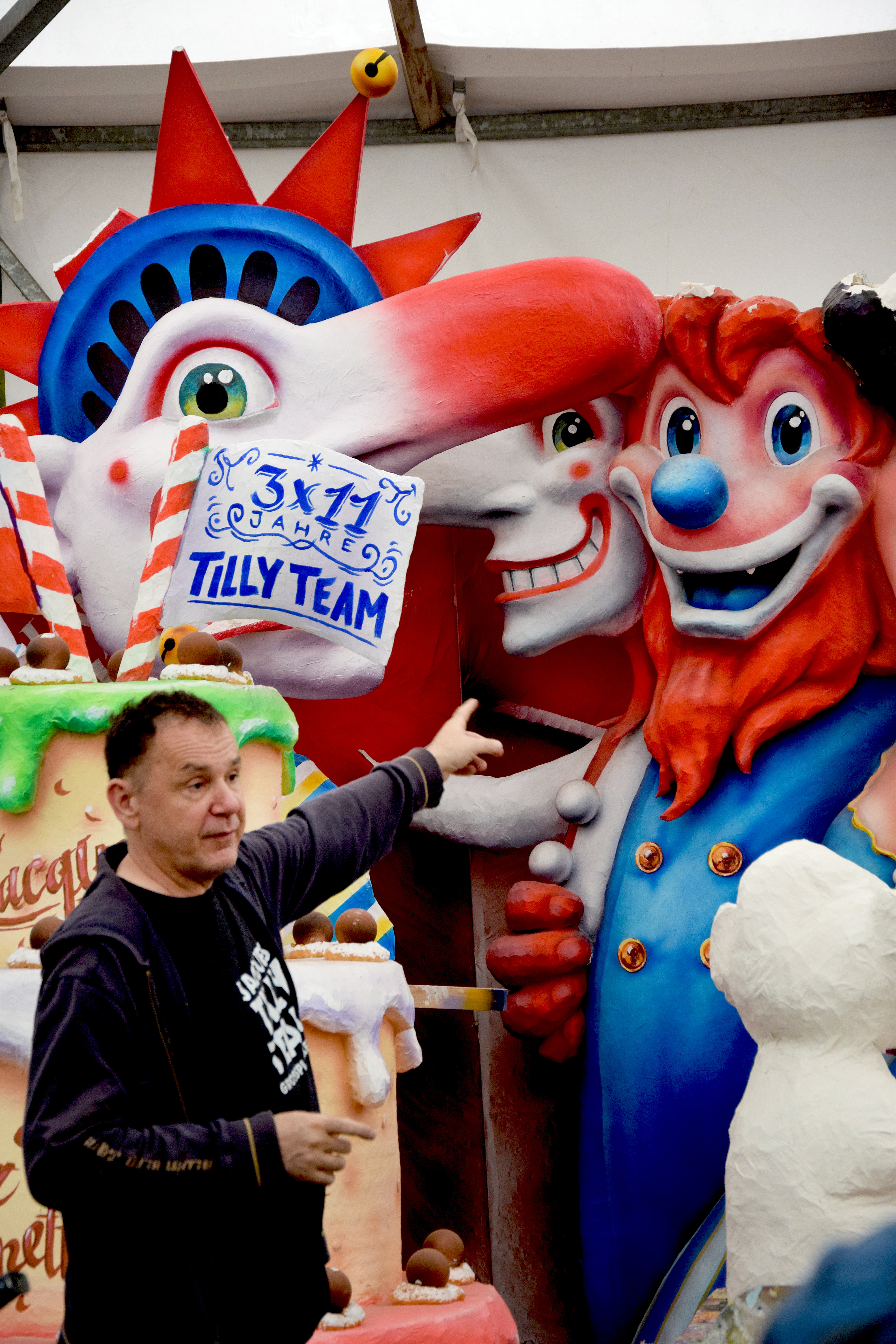 Um die große Monheimer Wagenbau-Tradition weiter zu pflegen und künftig mit noch mehr bunten Einfällen zu bereichern, spendierte die Stadt den Monheimer Karnevalisten jetzt ein Workshop-Wochenende bei Jaques Tilly, dem Düsseldorfer Großmeister der Wagenbaukunst. Die Organisation und Auswahl der 23 Teilnehmenden hatte zuvor die Große Monheimer Karnevalsgesellschaft übernommen.