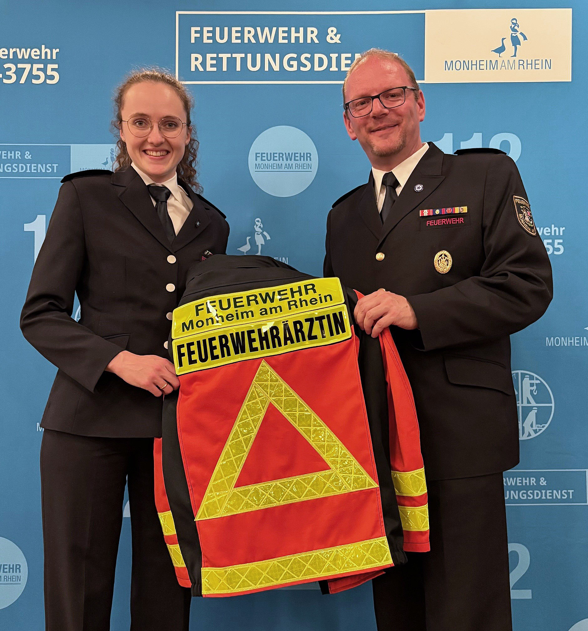 Rebecca Vogt, ehrenamtliche Angehörige des Löschzuges Baumberg, konnte durch die Wehrleitung zur Fachberaterin Medizin und Feuerwehrärztin ernannt werden. Die Medizinerin bildet sich derzeit zur Fachärztin für Unfallchirurgie und Orthopädie weiter und berät künftig die Feuerwehr insbesondere zu arbeitsmedizinischen Themen innerhalb der Freiwilligen Feuerwehr.