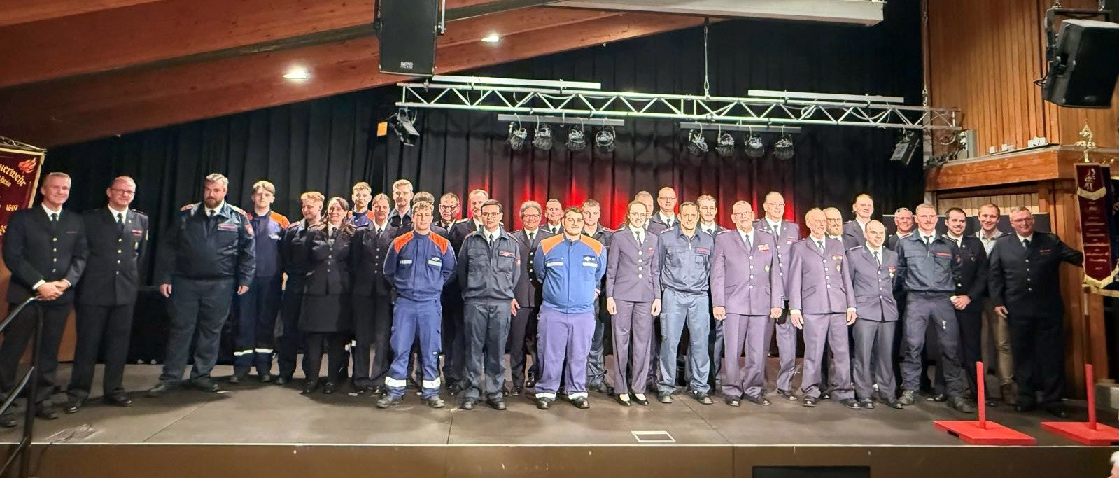 Vier neue ehrenamtliche Mitglieder wurden in die Freiwillige Feuerwehr aufgenommen. Zwei Angehörige der Jugendfeuerwehr wechselten in die aktiven Löschzüge. In seiner Ansprache blickte Schlender auf ein herausforderndes Einsatzjahr mit rund 6700 Einsätzen im Rettungsdienst und etwa 1500 Einsätze für die Feuerwehr zurück. Dabei hob er zwei besonders belastende Lagen hervor: den Großbrand an der Niederstraße im August sowie den schweren Verkehrsunfall in der Baumberger Aue, bei dem drei junge Menschen ihr Leben verloren. Diese Einsätze haben die Kräfte physisch wie psychisch stark gefordert, betonte Schlender und dankte allen Beteiligten für ihren besonderen Einsatz. Gleichzeitig hob er die gute und verlässliche Zusammenarbeit mit Politik und Verwaltung hervor, etwa beim fortschreitenden Neubau des Gerätehauses Baumberg, das Anfang 2026 in Betrieb gehen soll.