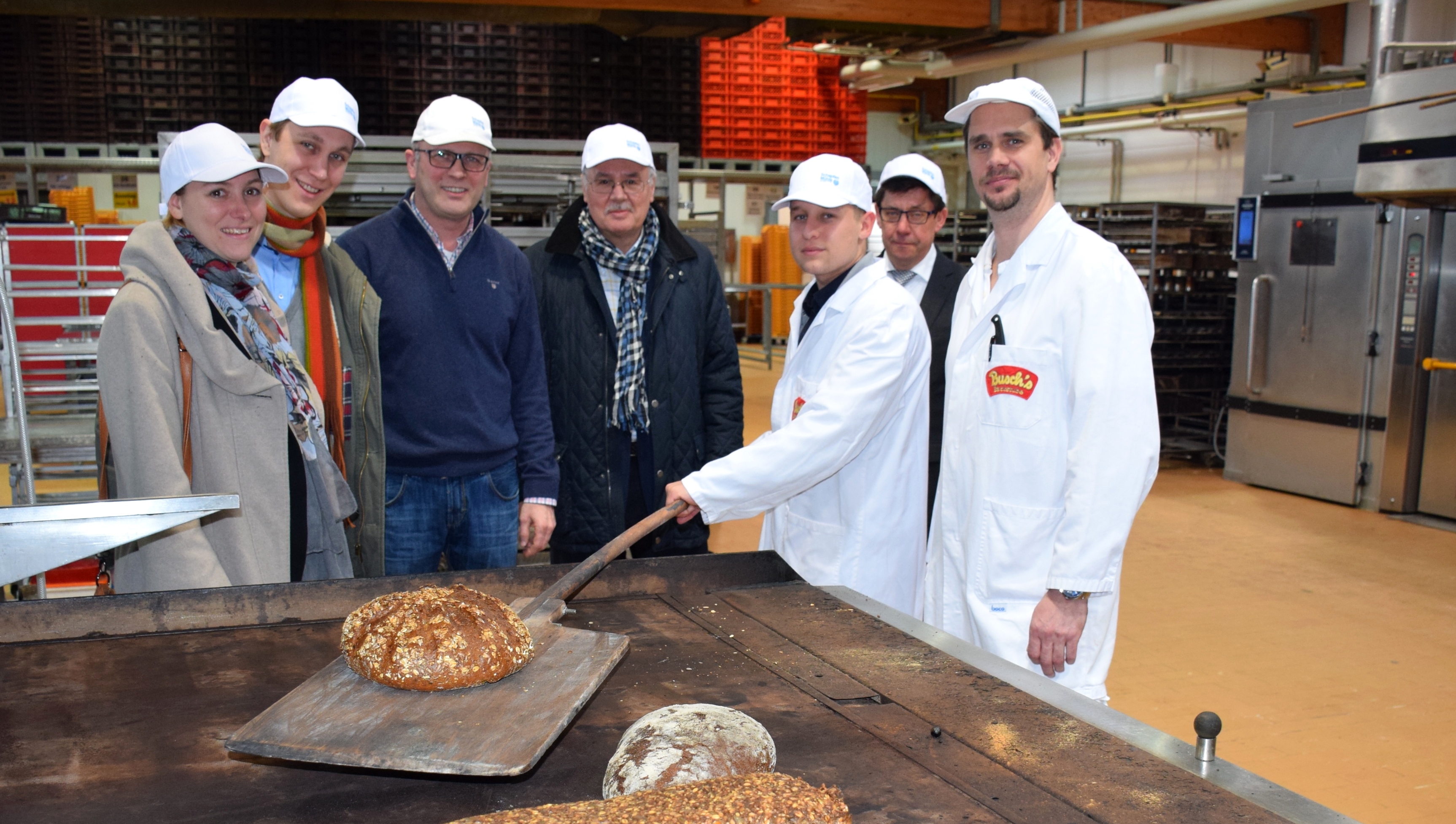 Bei der Bäckerei und Konditorei Busch informierte sich Hans-Dieter Clauser mit Vertretern von Stadt und Agentur für Arbeit über die Ausbildung